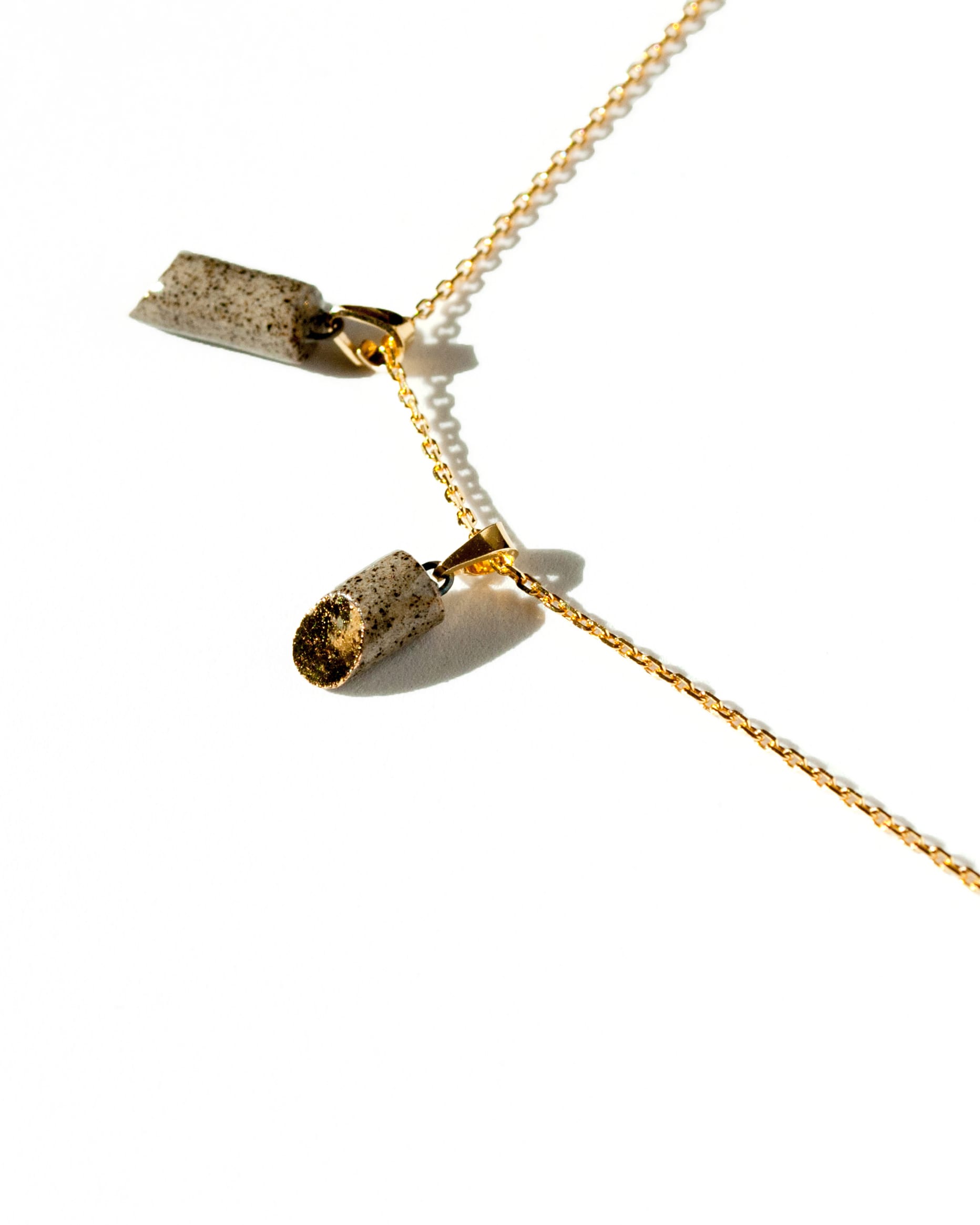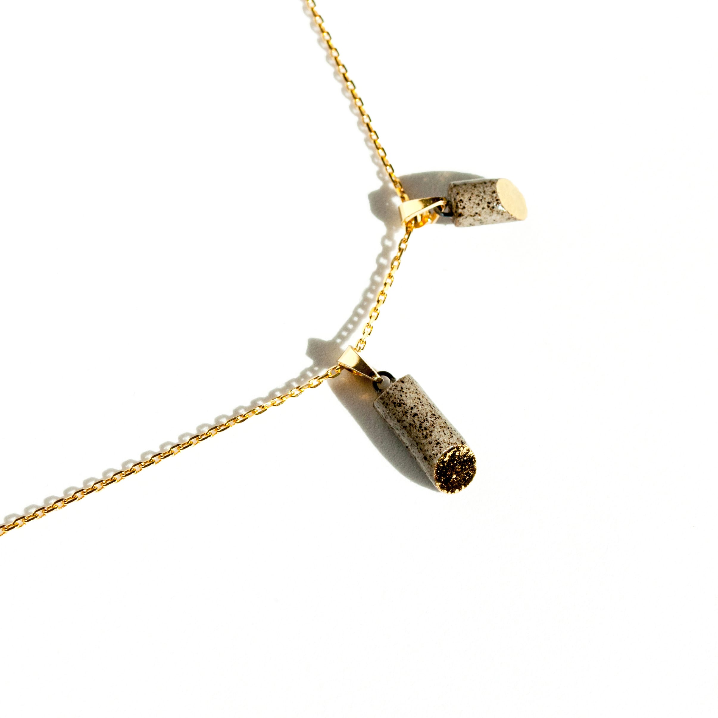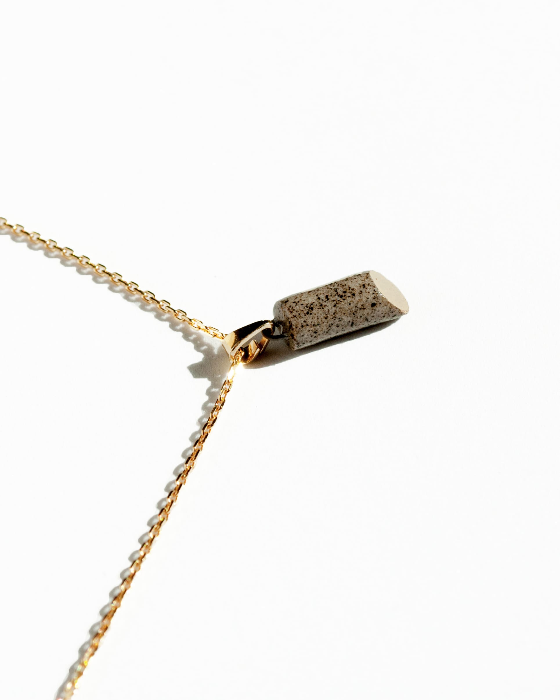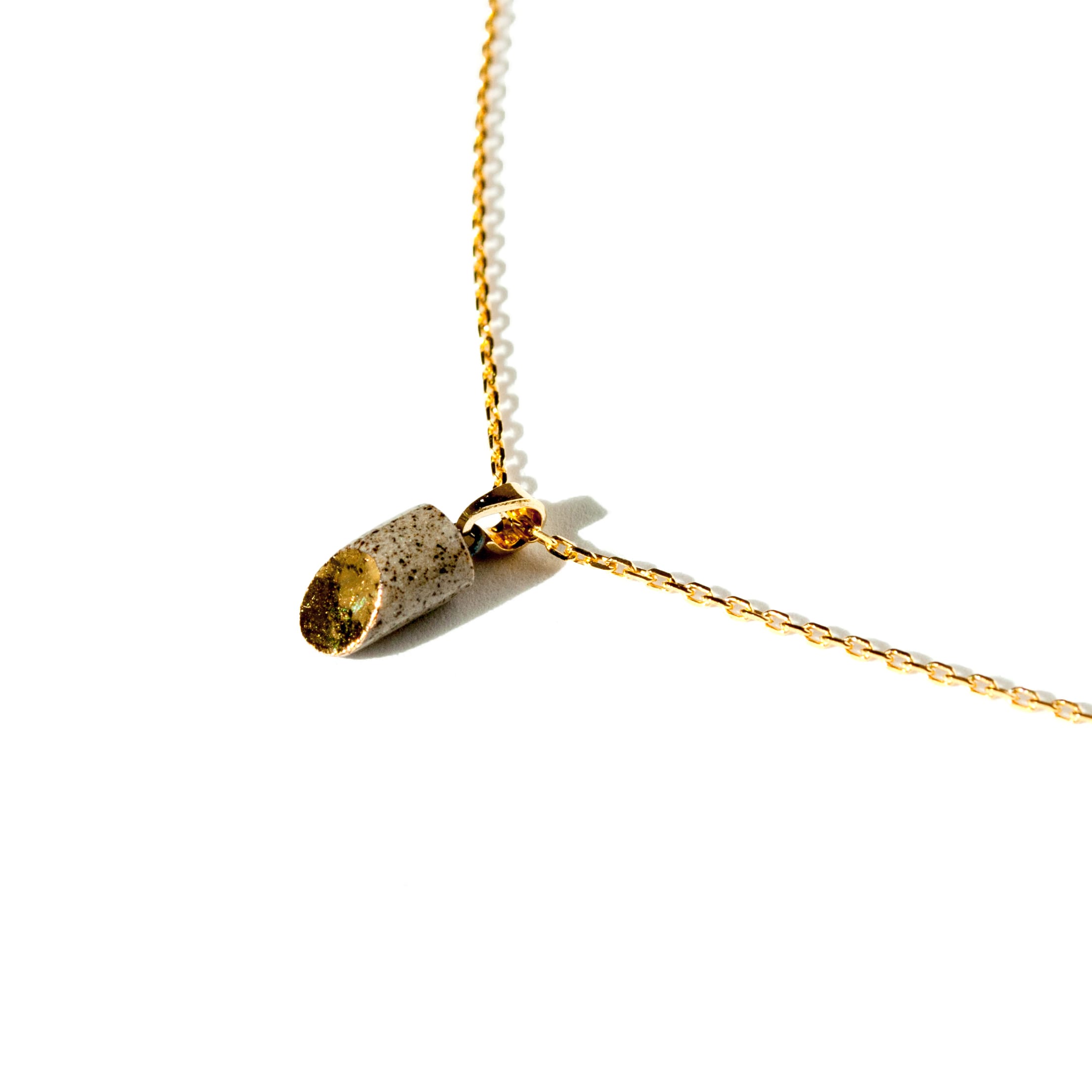 Atraskite subtilią eleganciją ir modernų minimalizmą su mūsų „Golden Slice“ pakabuku — unikaliu rankų darbo kūriniu, pagamintu iš aukštos kokybės akmens masės molio. Pakabukas formuojamas glotnų vamzdelio formos elementą nupjaunant 45° kampu. Nupjautas paviršius padengiamas prabangia aukso liustra, kuri išryškina kontrastą tarp natūralaus molio faktūros ir skaidraus glazūros blizgesio. Rezultatas — harmoningas žemiškos medžiagos ir subtilios prabangos derinys.