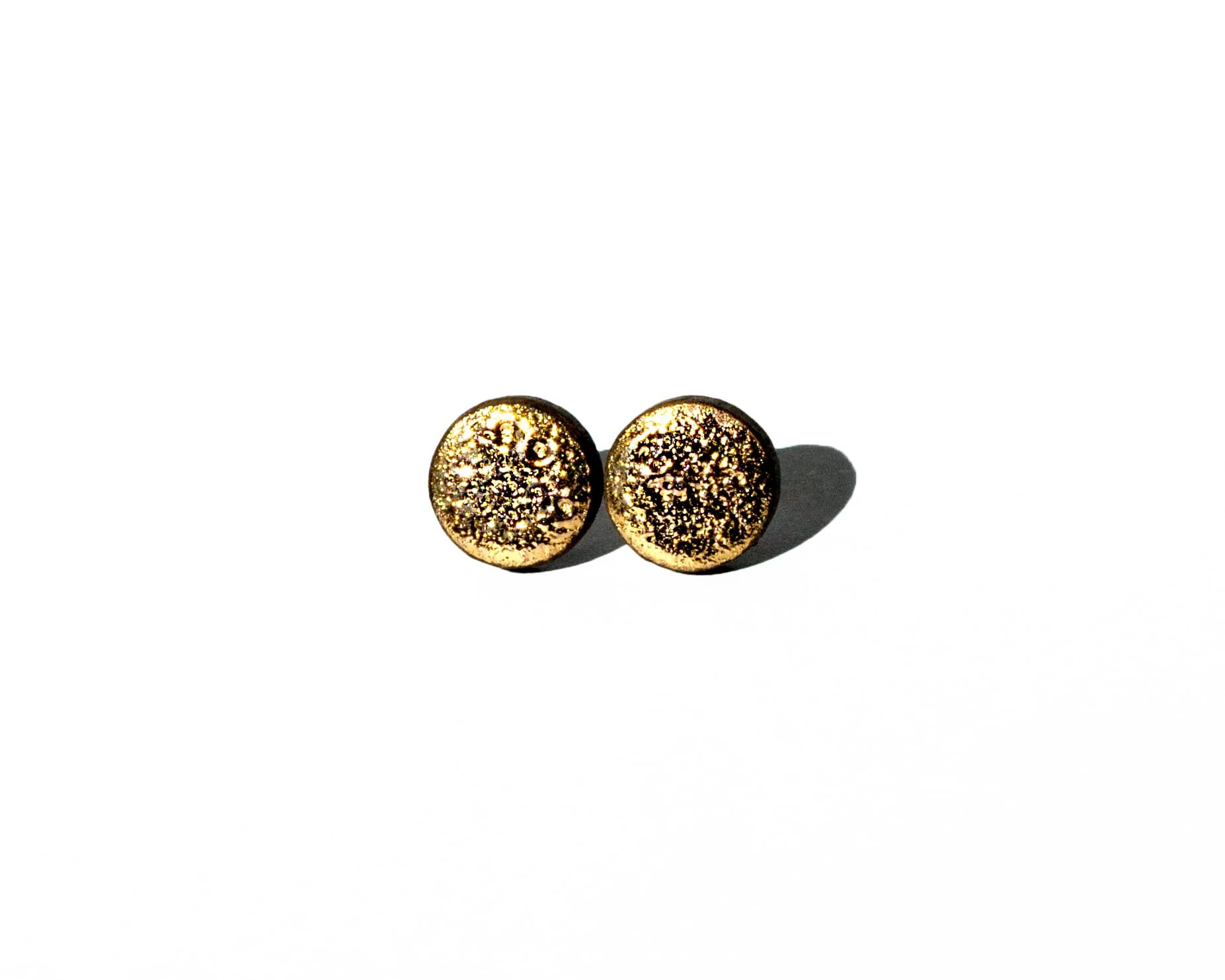 Full Moon – Round Ceramic Earrings with Moon Texture & Gold Luster